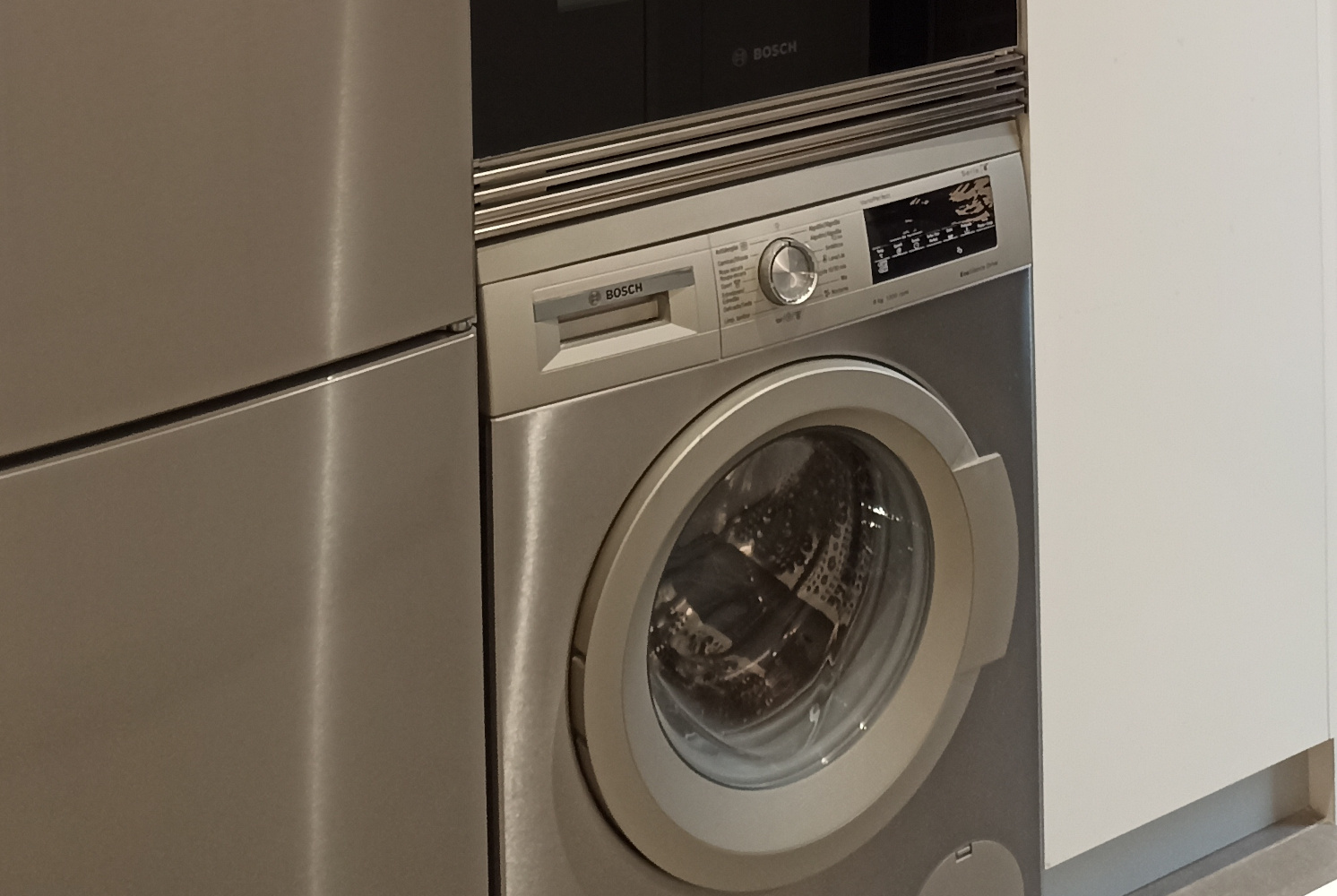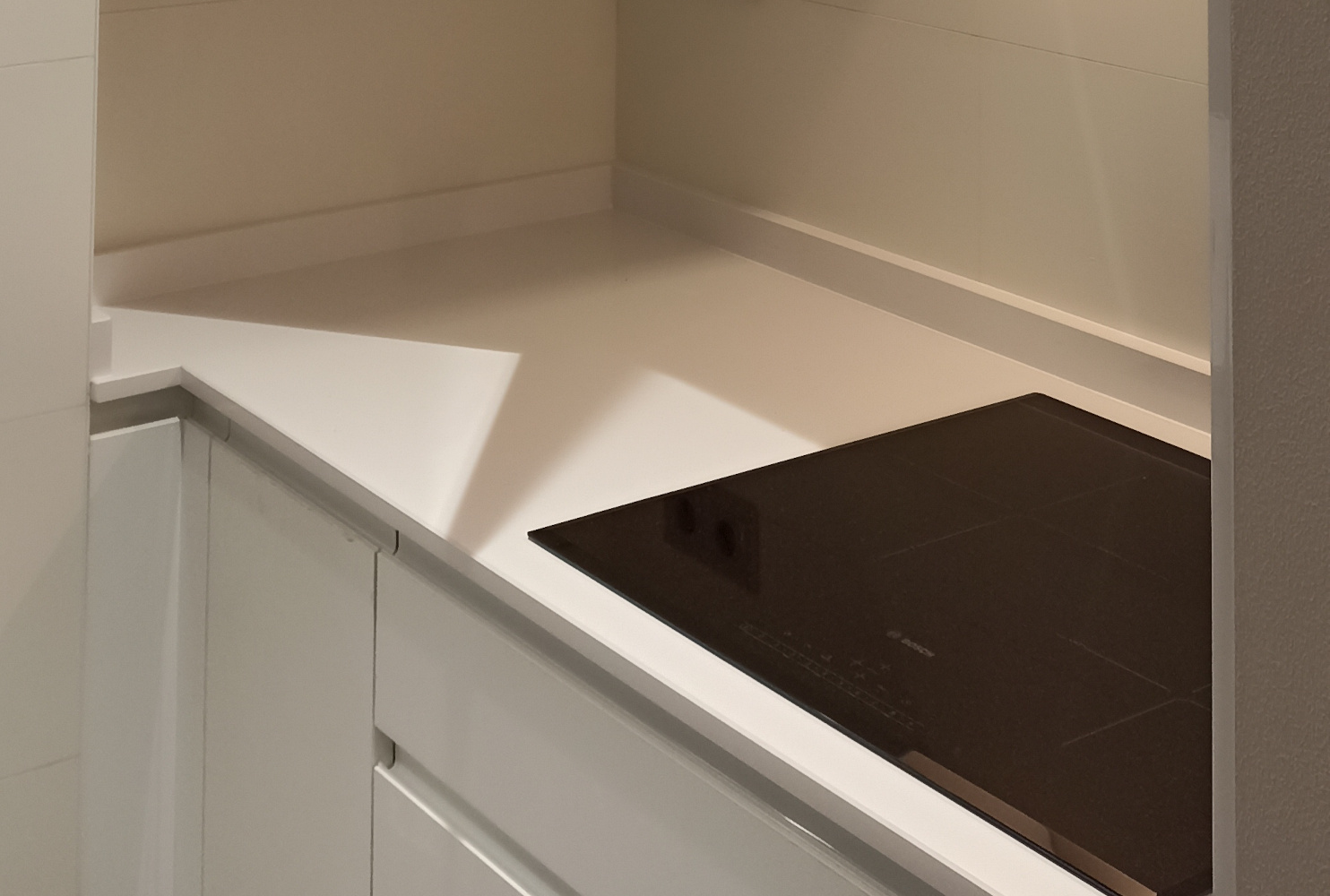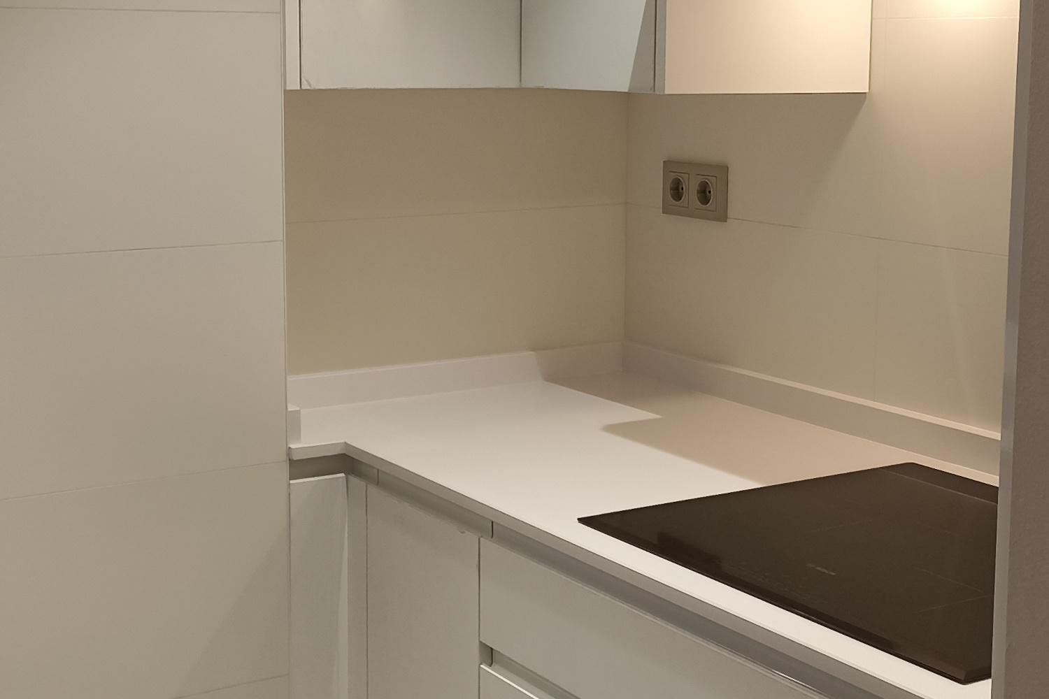 El mobiliario se ajustó al centímetro, gracias a nuestro fabricante y al montaje preciso realizado, el resultado es una cocina que pese a lo que pueda parecer; al diario es cómoda y tiene cubiertas todas las necesidades de la cocina.